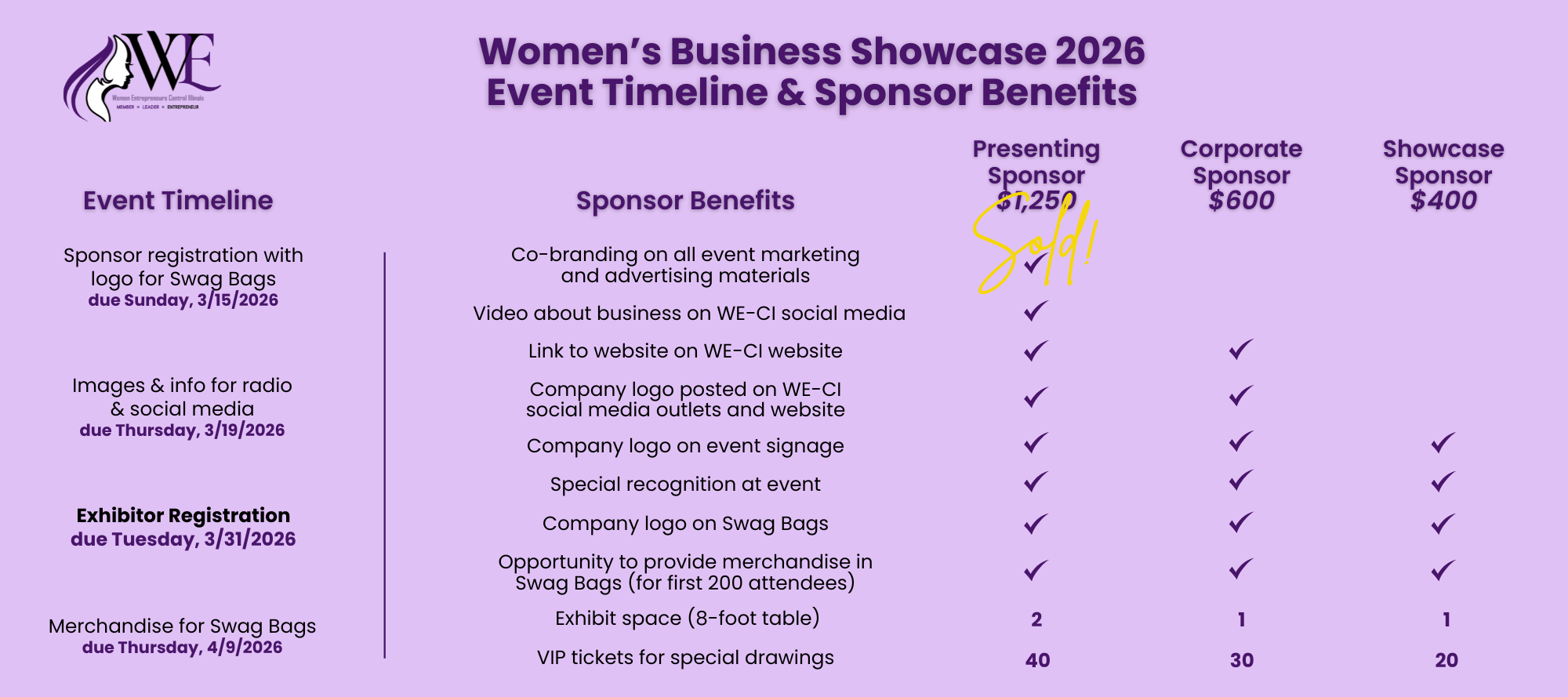 Once registered, you will be contacted to submit your logo for event marketing purposes, as well as for the opportunity to include items in the giveaway bags. You can also contact Alyssa Furling at afurling@gmail.com or 217-585-5080 with any questions.